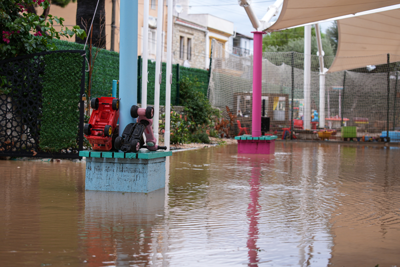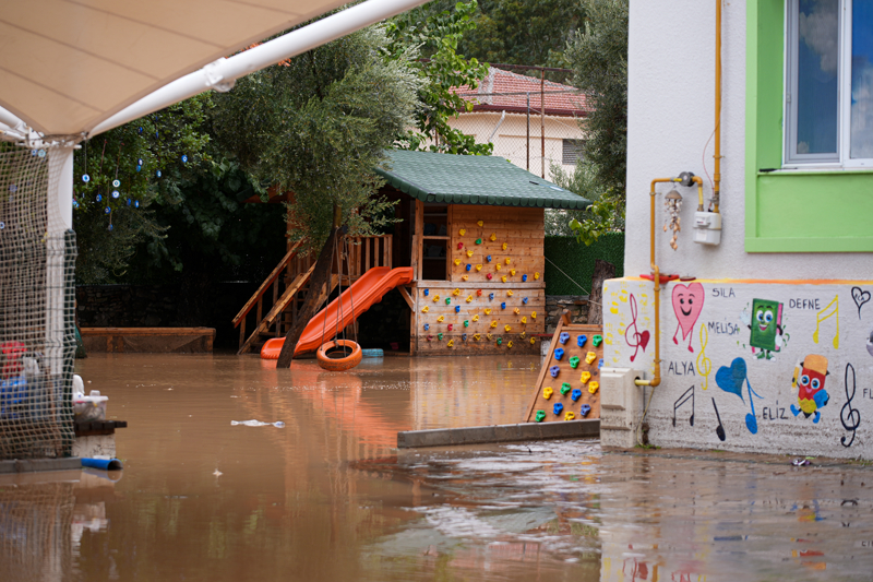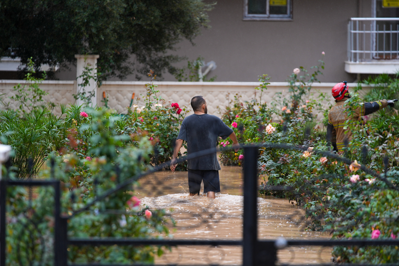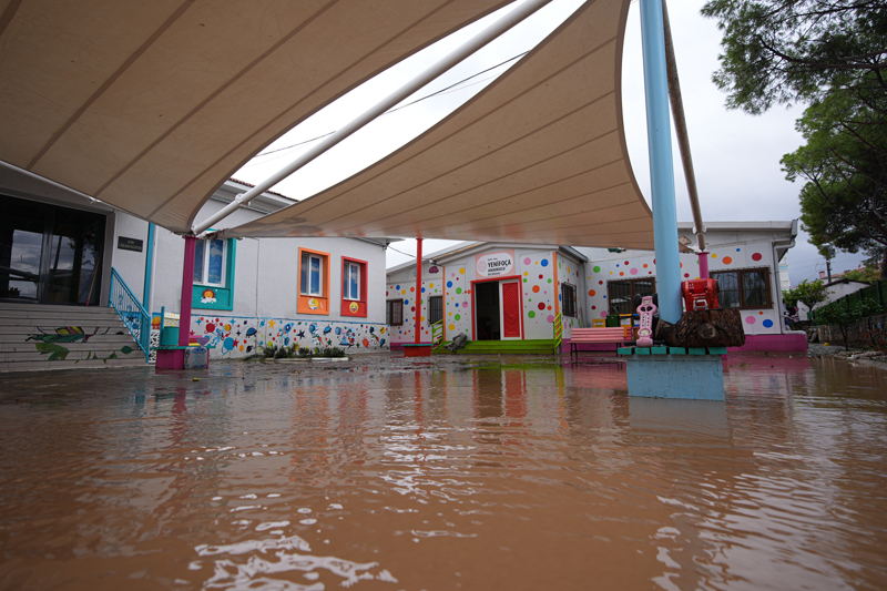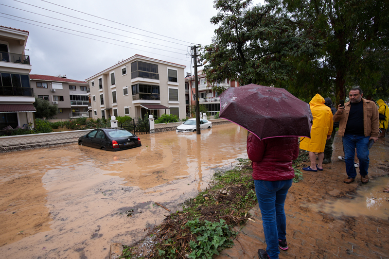 İzmir'in Foça ilçesinde etkili olan sağanak nedeniyle dere taştı, bazı cadde ve sokaklarda su birikintileri oluştu.